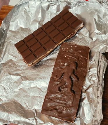 Chocolate candy bar with a Sasquatch on top. Flavors include- White Chocolate / Milk chocolate/ Dark Chocolate/ Chocolate Mint/ Peanut Butter / Cookies & Cream / Orange Dreamsicle and Butterbeer.